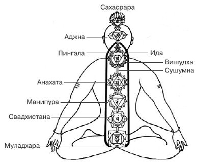 Чакры образованы пересечениями каналов Иды, Пингалы с Сушумной.